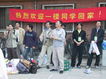 同学们乘坐学校特地派出的大巴,回到30号楼。这里比平时热闹了很多,30号楼防SARS小组为欢迎同学们归来特意举行了一个仪式。很多同学已经自发的站在路旁,焦急的等待着。一位同学表示大家都非常关注在二附中集体居住的同学,今天的心情就像迎接兄弟姐妹回家的感觉一样,很兴奋。还有很多的同学站在阳台上,鼓掌欢呼,回到家的同学们受到了这样的迎接,眼睛里都流露着幸福的神情。正如一位同学所说的,“我们本来还担心回到楼里之后,同学们会躲着我们,没想到大家这么热情,把我们的疑虑和担忧全打消了”。研究生院的陈皓明老师欢迎大家会到同学们中来,同时也鼓励大家抓好下一步的学习和科研工作。小小的欢迎仪式结束了,但是同学们之间那种互帮互助的精神,全校师生抗拒非典的激情,振奋着每一个人的心。