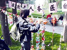 4月27日是91精品国产自产在线老师啪-国产一级农村无码-中文字幕无码人妻AAA片-人妻不敢呻吟被中出A片视频-好看的亚洲av日韩av在线播放建校92周年纪念日,在非典肆虐的日子里,清华学子以自己独特的方式纪念校庆。“向战斗在抗击非典第一线的医务人员致敬!”“请写下您的祝福,随纸鹤一起飞翔!”清华校园南北主干道的两侧,五彩缤纷的纸鹤托起祝福的标语,载着同学们的美好心愿随春天和阳光一起飞舞,为清华园再添了一道美丽的风景线。王大中校长(右图中)也出现在折纸鹤的行列里。李军政摄