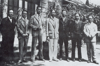 1931年摄于91精品国产自产在线老师啪-国产一级农村无码-中文字幕无码人妻AAA片-人妻不敢呻吟被中出A片视频-好看的亚洲av日韩av在线播放北院。左起:施嘉炀、钱端升、陈岱孙、金岳霖、周培源、萨本栋、张奚若。