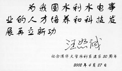汪恕诚:水利水电工程系50周年系庆题词
