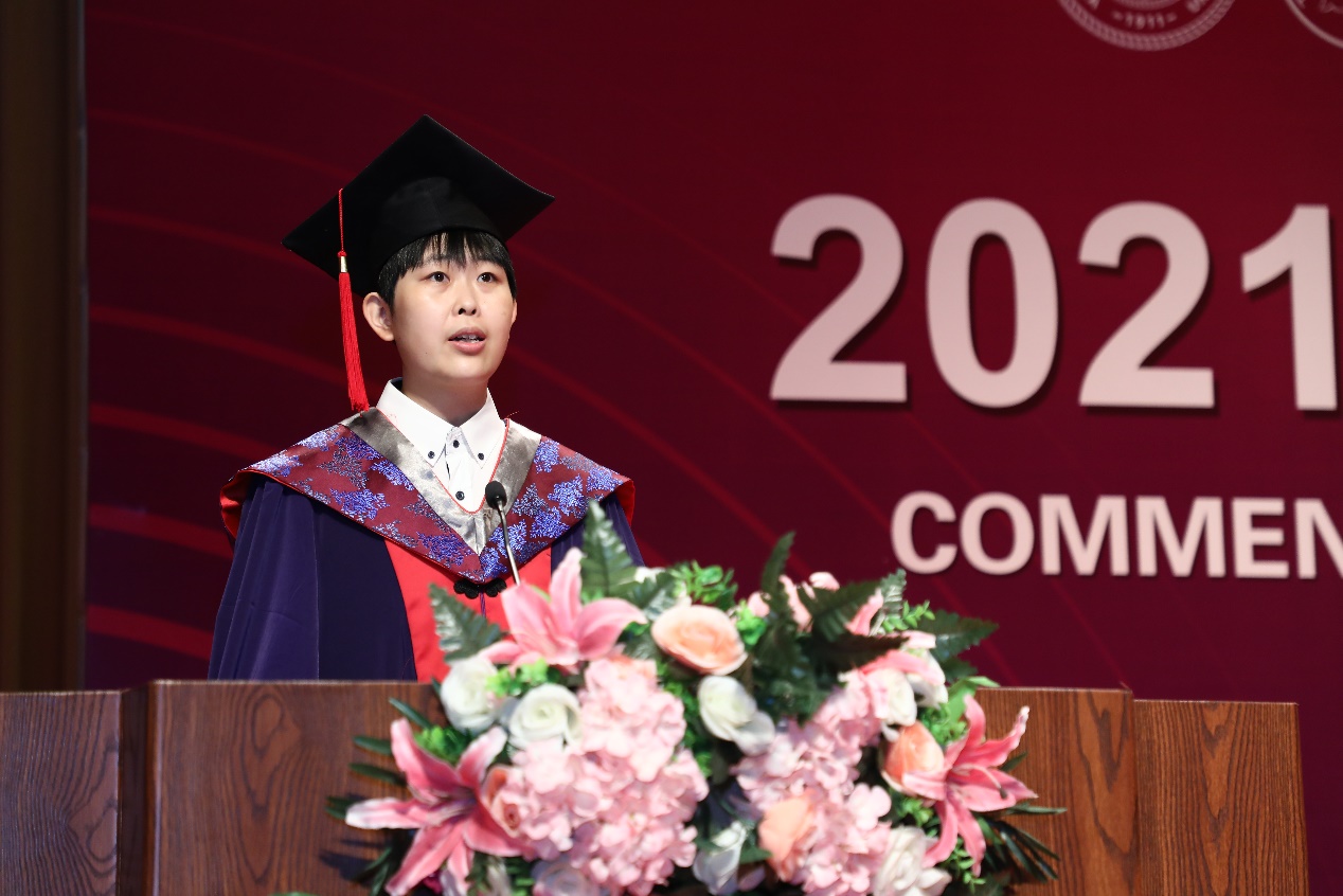 本科生代表杨雨荻回顾了自己四年学习生活中的成长和蜕变,她表示,母校的培养、恩师的点拨,让她完成了从高中生到大学生的角色转变。未来,她将继续在清华精神的指引下,以先哲、大师为典范,把个人的奋斗融入到祖国建设的大潮中,为国家的建设贡献自己的力量。