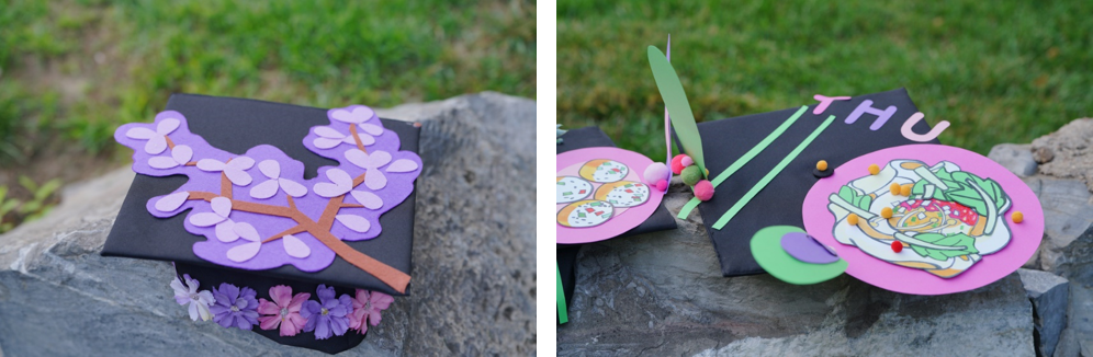 “锦绣前程”(左)“清华食堂”毕业帽款式
