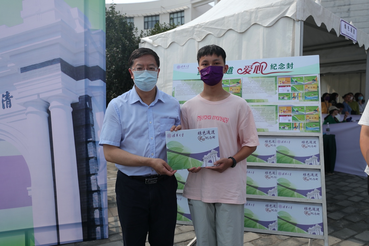 邱勇向新生赠送《绿色通道爱心纪念封》