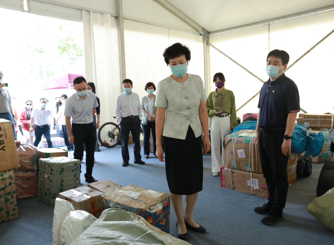 随后,陈旭一行步行至芝兰园餐厅检查疫情防控工作和午餐准备情况。今年新生集中报到期间,为切实做好疫情防控和各个餐厅间的人员分流,学校将芝兰园和丁香园餐厅作为新生指定购餐地点。芝兰园为新同学们准备了不同规格的餐品,并开设了四个通道引导新生快速选餐购餐后打包带回宿舍食用。