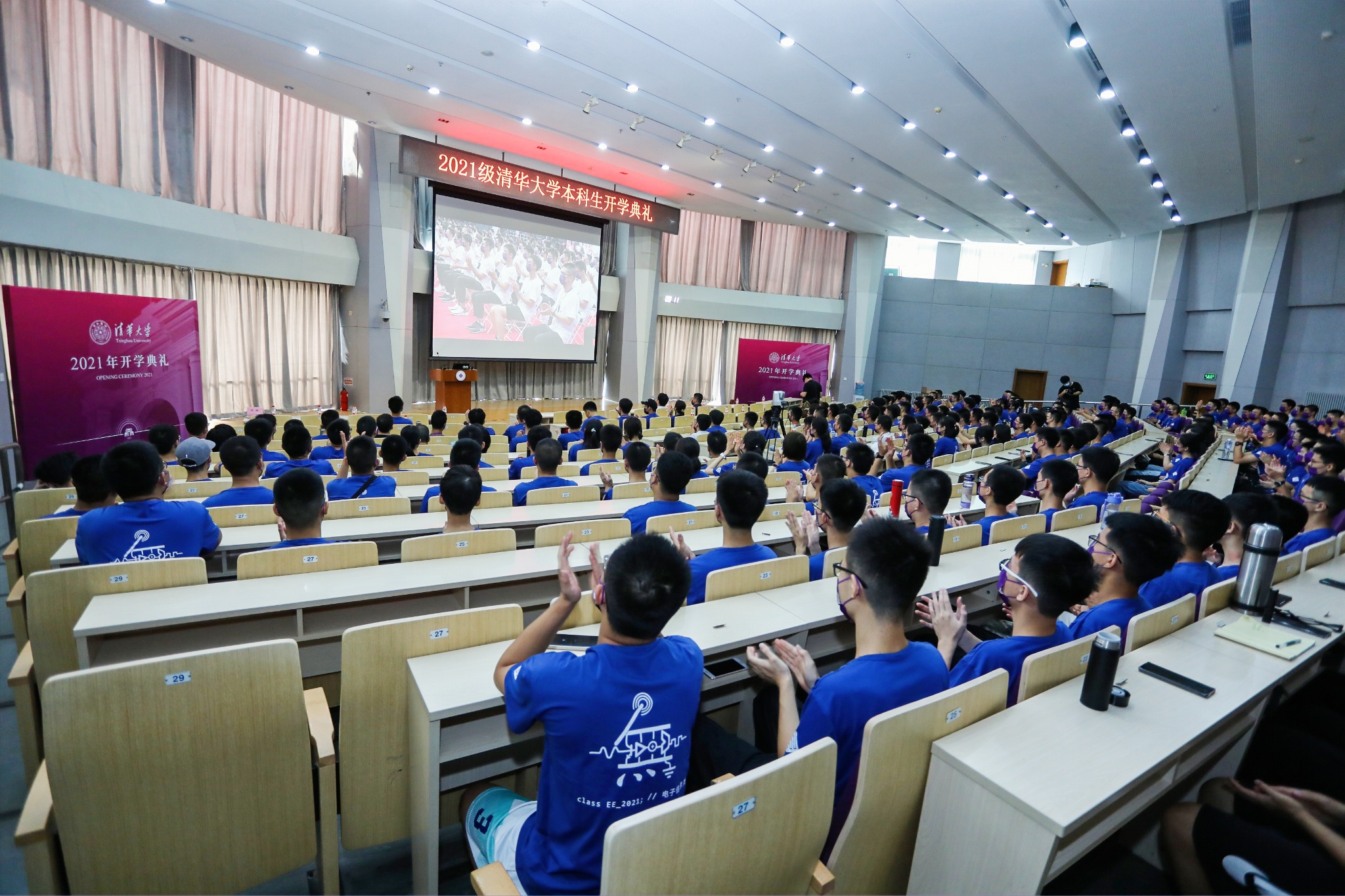 鉴于目前疫情防控形势,本次开学典礼采用线上线下结合的方式举行,线下设置了25个会场,并向全球同步双语直播。近500名新生代表在综合体育馆主会场参加典礼,3000余名新生在分会场观看现场直播。今天,“一字班”的新同学承载着期许和梦想,跨越山海,开启青春逐梦之旅。莘莘学子的到来,亦将为这座百年学府注入崭新生机。