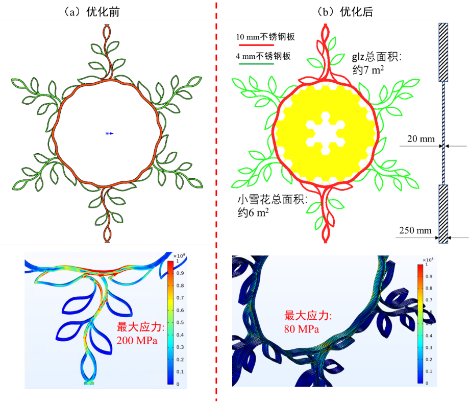 优化前后中心图案的受力分析