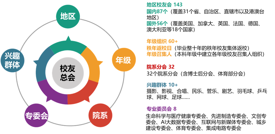 为更好地统筹和协调清华校友工作,2019年7月学校成立校友工作办公室,形成“校友办+校友会”的校友工作体系。校友办和校友会更加有效地调动资源,指导协调和组织落实校内校外、国内国外的校友工作。