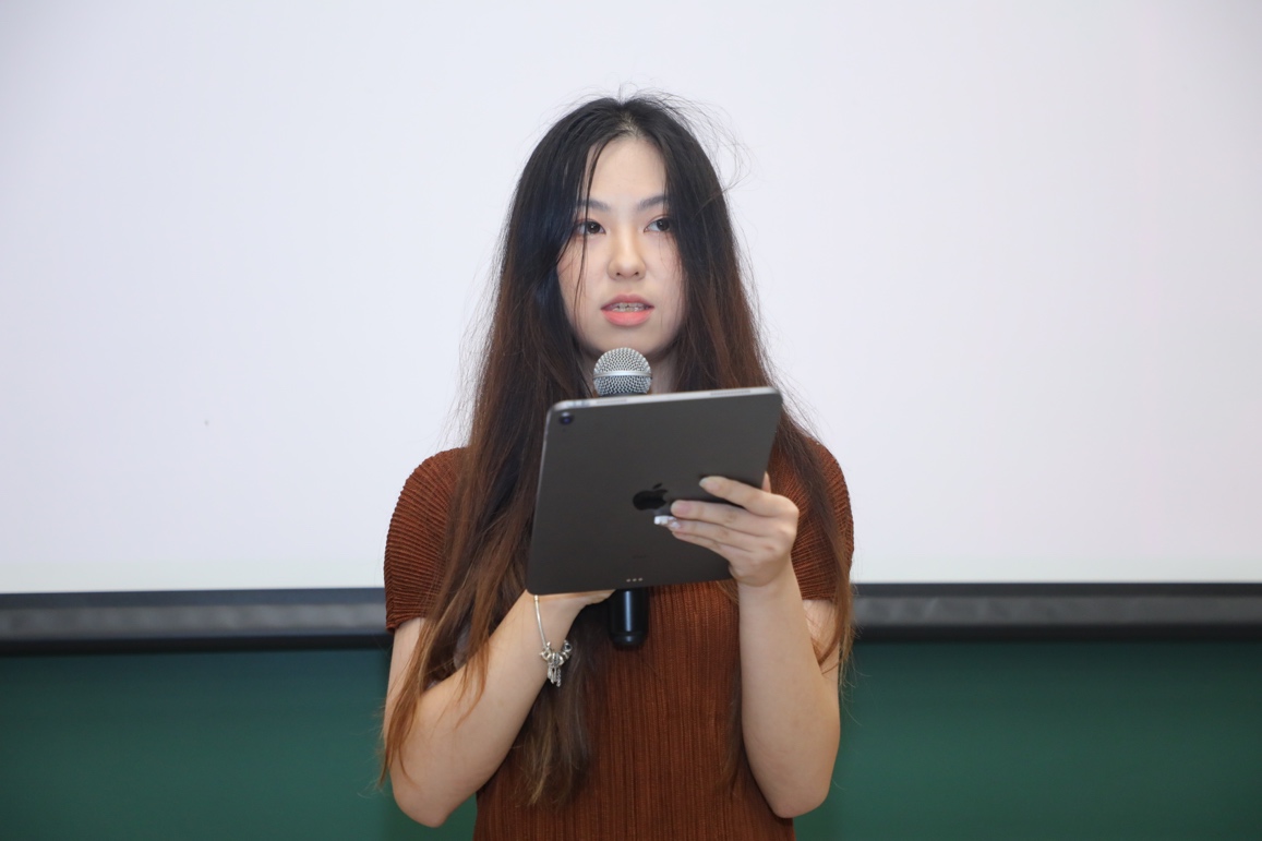 学生代表腾采妮分享了她在清华两年来学习生活的经历和感受。她表示,在外文系所学的课程内容不仅提升了她的外文能力,而且加强了她对母语和国家社会文化的理解。她希望新同学能够找到与自己热情相合、技能匹配之所,尽情展现自己的能力和风采。