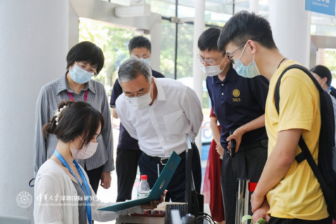 当天上午,深圳国际研究生院执行院长高虹、党委书记武晓峰、党委副书记关添、院长助理宋岩等来到报到现场看望新生和迎新工作人员,仔细询问迎新相关工作情况,与2022级新生们亲切交流,期望他们在新的征程中脚踏实地、勇攀高峰,并对辛勤忙碌的工作人员和志愿者们表示衷心感谢。