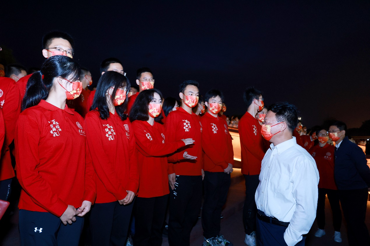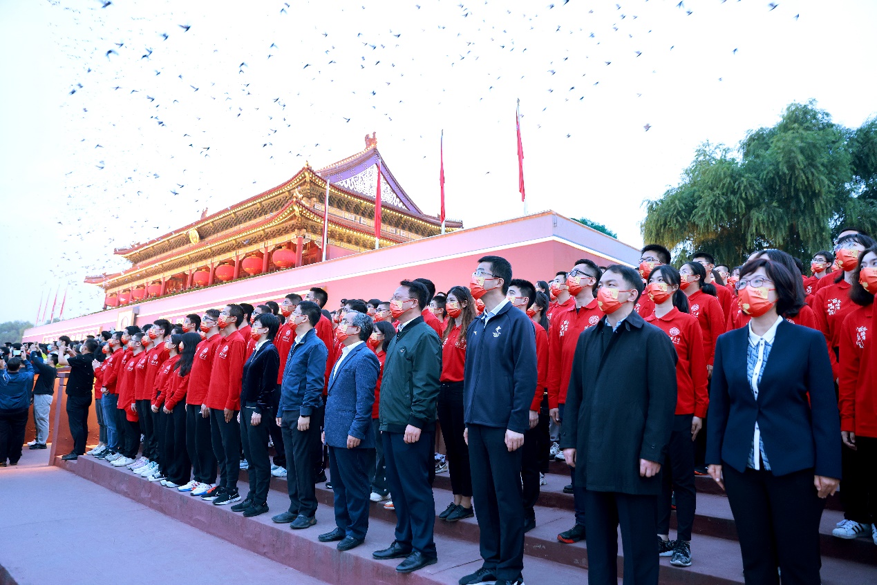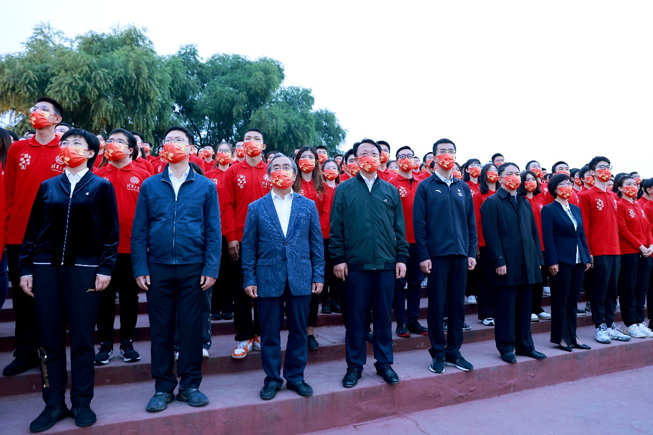 江山如此多娇,风展红旗如画。“今天你们作为新时代的中国青年站在这面用烈士鲜血染红的旗帜下,再次出发!”邱勇最后表达了对同学的期盼:希望同学们不忘初心、牢记使命,担当起让伟大事业后继有人的历史使命,努力成为可堪大任的时代新人,到祖国和人民需要的地方发光发热!