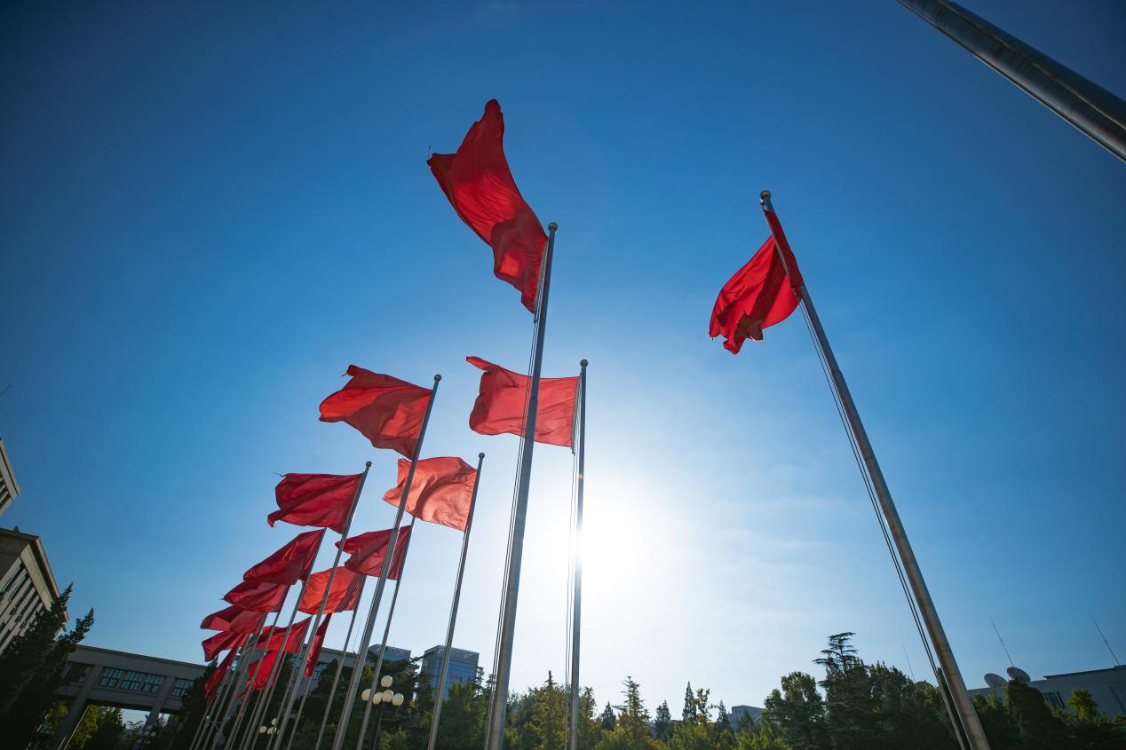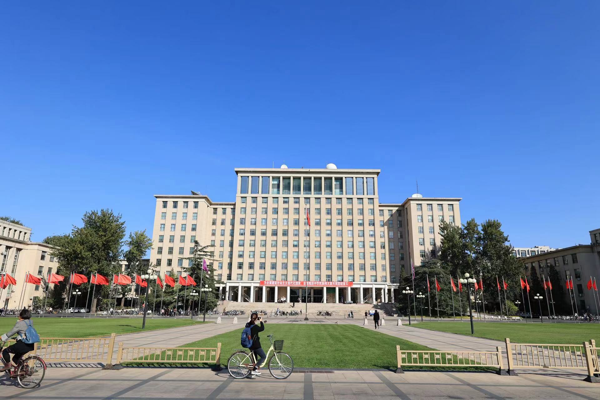 主楼前红旗迎风飘扬