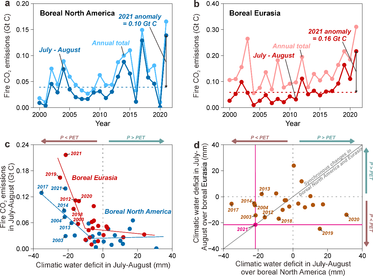 这一研究进展,成为了团队后来成功揭示北半球中高纬地区野火碳排放变化及驱动力的开端和“密钥”,启发了第四篇论文研究。