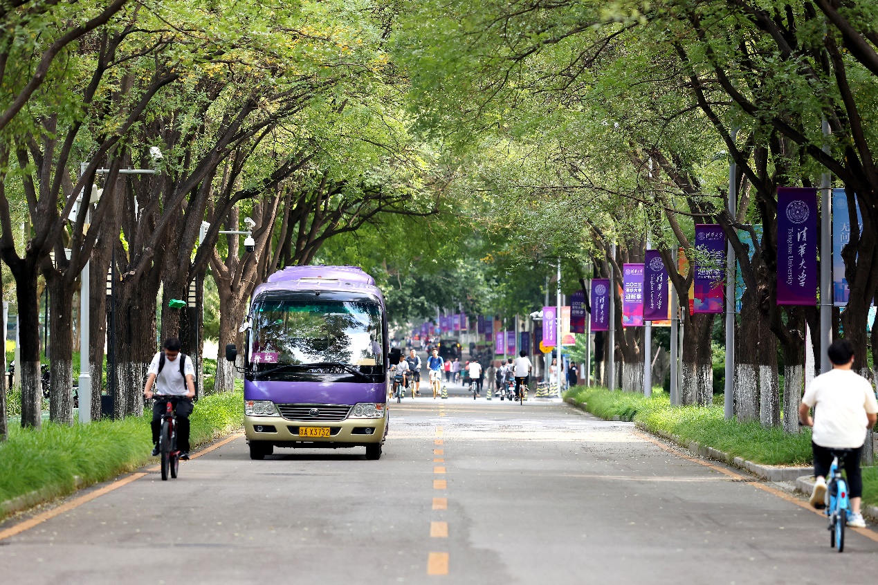 王伟驾驶校车行驶在清华园