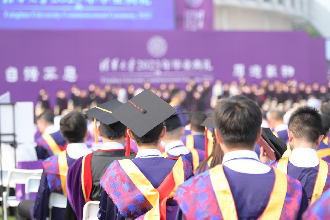 本次毕业典礼通过“雨课堂”进行中英文双语视频直播,部分无法到场的毕业生及其亲友等在线上参加典礼。