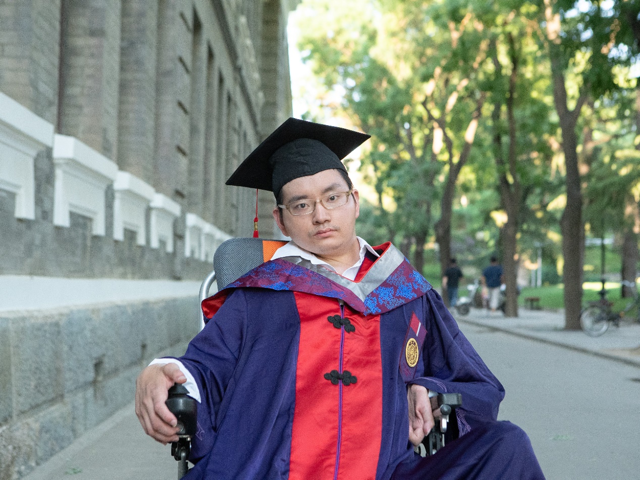即将离开清华园,园子里的很多地方他还没去过,“想去但轮椅过不去。”他怀念大一那年在篮球场上尽情奔跑的自己,在图书馆里泡一整天的自己。仅那一年,他就看完了图书馆某排书架上的上百本化学书籍。