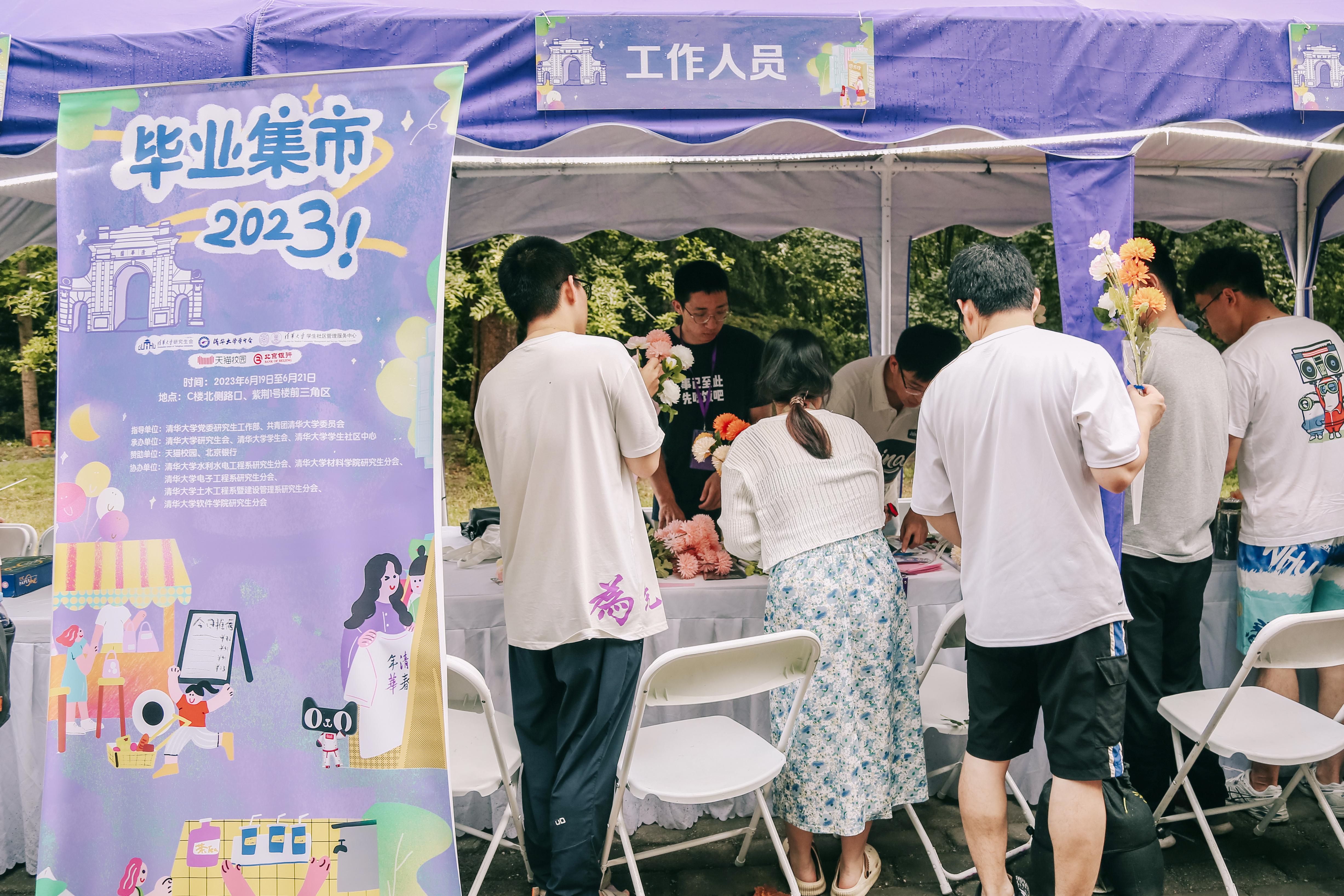 毕业集市设置二手集市、手工集市、运动集市、记忆集市和爱心集市五大集市。在二手集市中,超过200位摊主售卖好物,让带不走的青春回忆继续在园子里温暖延续。在手工集市,毕业季捧花、帆布包、T恤、徽章、扇子和飞盘六种手工DIY活动热闹进行,大家踊跃参加制作具有清华特色的专属手工制品。运动集市组织投篮游戏、沙包投掷、拍中9秒等多种趣味体育游戏,持续营造“无体育,不清华”的浓厚氛围。记忆集市开展毕业季心愿、“写给下一个住在这的你”毕业寄语和“寓你同行”宿舍清扫活动,覆盖全校43栋宿舍楼,吸引超过1800名师生在毕业季写下祝福、心愿与对未来的展望。在爱心集市中,鼓励毕业生进行自行车和衣物捐赠,让青春与爱接续。各个集市活动精彩纷呈,持续火爆。
