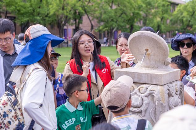 志愿者为游客讲解校园风物