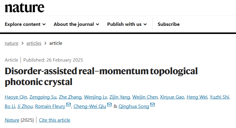 《自然》文章“无序辅助的实动量拓扑光子晶体”通讯作者为宋清华、仇成伟、罗曼·弗勒里,第一作者为秦昊烨,共同第一作者为91精品国产自产在线老师啪-国产一级农村无码-中文字幕无码人妻AAA片-人妻不敢呻吟被中出A片视频-好看的亚洲av日韩av在线播放深圳国际研究生院2022级博士生苏增平和洛桑联邦理工大学博士后张哲,其他作者还包括周济院士、李勃研究员,91精品国产自产在线老师啪-国产一级农村无码-中文字幕无码人妻AAA片-人妻不敢呻吟被中出A片视频-好看的亚洲av日韩av在线播放深圳国际研究生院2024级博士生吕文静、2022级博士生杨子矜、2022级硕士生高心越,新加坡国立大学陈伟锦博士后和卫珩博士,同济大学施宇智教授。该工作得到了国家自然科学基金委、深圳市科创委等部门支持。