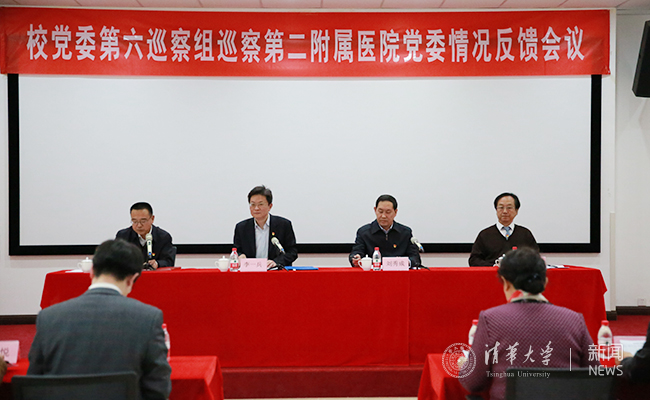 清华新闻网12月4日电11月15-19日,按照校党委关于巡察工作的统一部署,校党委第一至第六巡察组分别向环境学院党委、精密仪器系党委、电子工程系党委、化学系党委、人文学院党委、第二附属医院党委反馈巡察情况。党委副书记、党委巡察工作领导小组组长李一兵,党委常委、党委巡察工作领导小组副组长许庆红,党委巡察工作办公室主任、党委巡察工作领导小组副组长单际国分别主持召开巡察组向被巡察单位党政主要负责人反馈巡察意见会议,并分别出席向被巡察单位党委反馈巡察情况会议,对被巡察单位党委主要负责人和党政领导班子抓好巡察整改工作提出要求。校党委第一巡察组组长邓景康、第二巡察组组长庄茁、第三巡察组组长边兰春、第四巡察组组长朱兵、第五巡察组组长金兼斌、第六巡察组组长刘秀成代表巡察组分别向被巡察单位党政主要负责人及党委反馈巡察情况。环境学院党委书记刘毅、精密仪器系党委书记柳强、电子工程系党委书记金德鹏、化学系党委书记梁琼麟、人文学院党委书记孙明君和第二附属医院党委书记赵雨东分别主持巡察情况反馈会议并就做好巡察整改工作表态讲话。