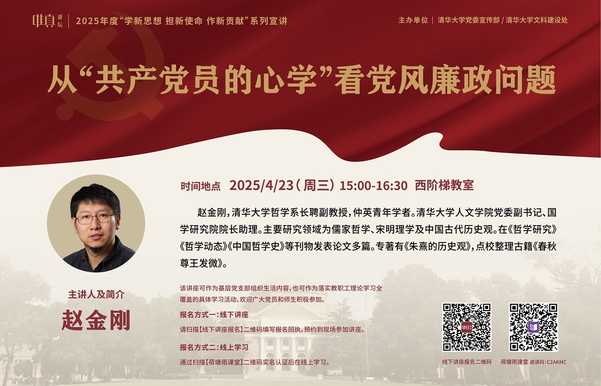 4月22日晚7点,“人文清华”讲坛校庆特别节目,青年学者专场第二季,3位清华80后学者,社会学学者严飞、历史学学者周思成、中国首个百米世界冠军胡凯联袂推出“人生没有标准答案”,带来他们在各自领域的观察、思考和体悟。