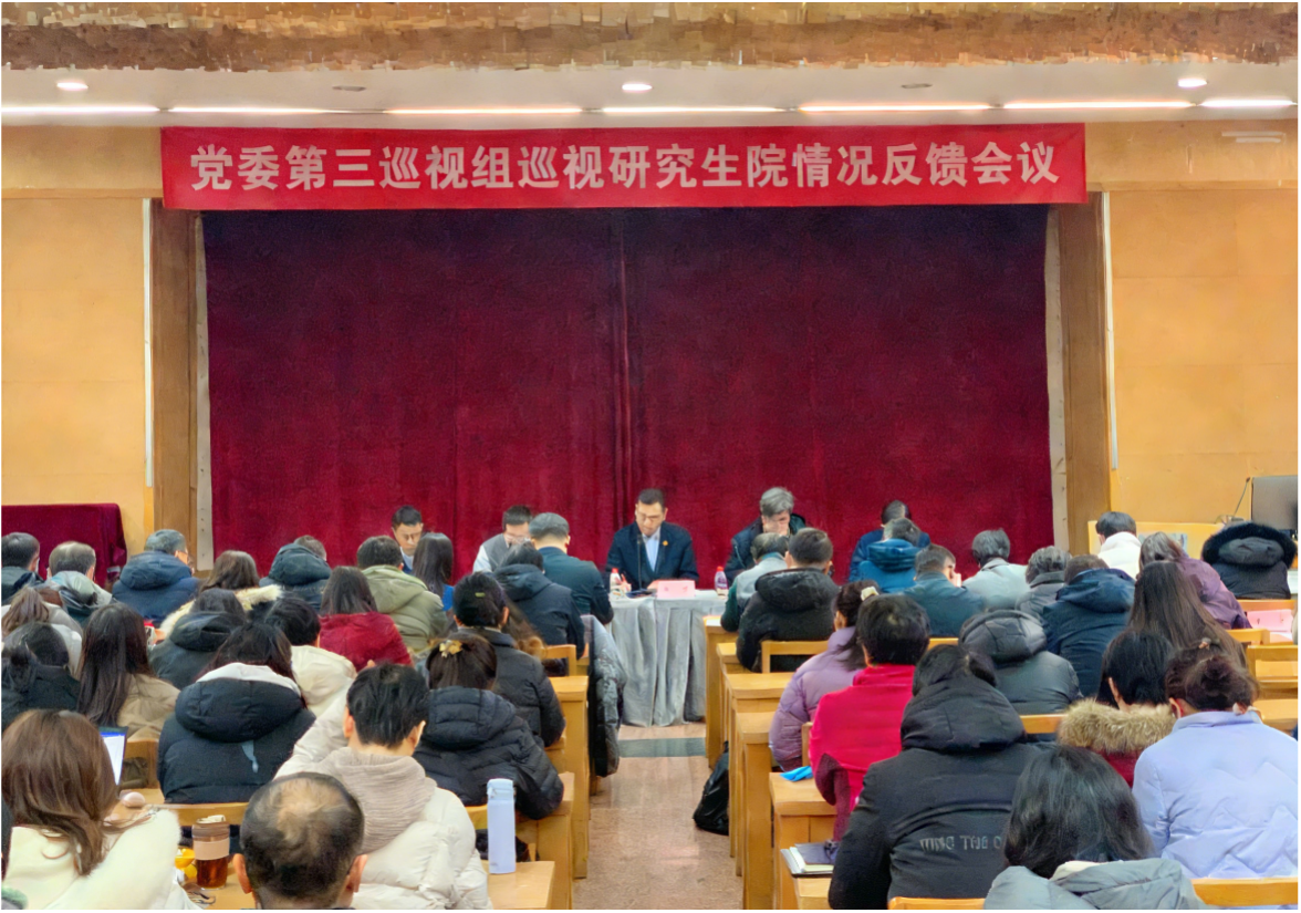 党委第三巡视组,纪检监察机构、组织部、巡视办有关负责同志,校机关党委负责同志,研究生院领导班子成员出席反馈会议;研究生院原班子成员代表、离退休职工代表、在职职工以及院系代表列席会议。