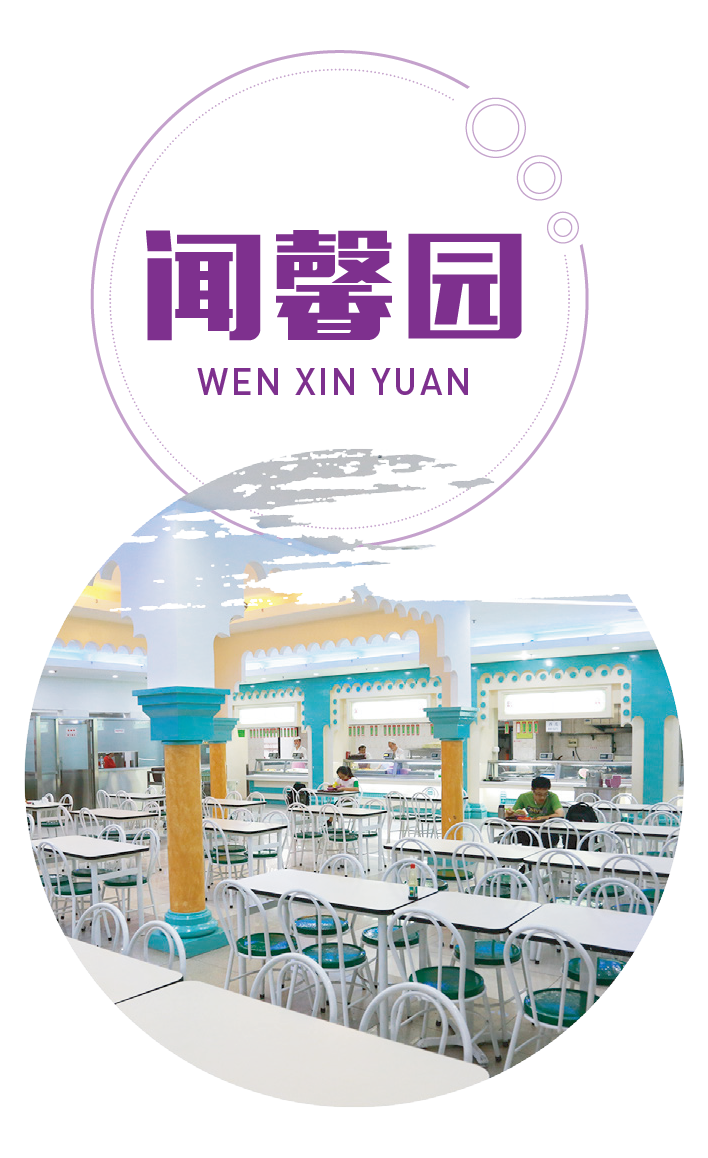 闻馨园食堂,坐落于观畴园食堂西南角,2001年投入使用,提供清真餐食,食堂环境典雅、干净,可同时容纳100余人就餐。 电话:62782430